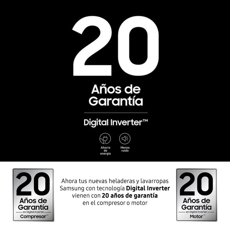 Disfrutá de una eficiencia energética superior, menos ruido y un rendimiento duradero. La tecnología Digital Inverter utiliza imanes potentes para un rendimiento más silencioso y potente, pero utiliza menos energía que un motor universal. También ofrece la mayor durabilidad de la industria y 20 años de garantía.