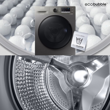 La tecnología Eco Bubble™ ofrece un lavado poderoso, incluso a bajas temperaturas. El detergente es convertido en burbujas, que penetran más rápidamente en las telas y remueven las manchas fácilmente, mientras protegen las telas y ahorran energía.