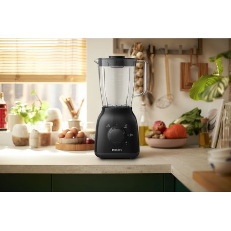 Disfrutá de licuados, jugos y preparaciones más frescas y saludables con la licuadora Philips HR2126/90 de la línea Daily Collection. Su potente motor de 500 W, junto a sus cuchillas ProBlend de acero inoxidable, garantizan un licuado eficiente, homogéneo y sin esfuerzo, incluso con ingredientes más duros.