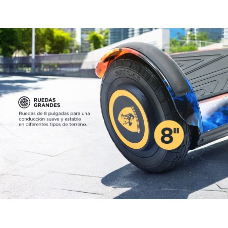 Con ruedas grandes de 8 pulgadas, la Hoverboard Gadnic garantiza una conducción suave y estable en cualquier terreno. Su potente motor de 250W permite alcanzar velocidades de hasta 12 km/h, mientras que su batería de iones de litio de 1.8Ah ofrece una autonomía de 6-8 km con una sola carga. Además, el tie