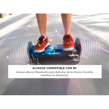 La Hoverboard Gadnic está equipada con un sistema doble XDL en la placa PCB para un rendimiento fiable y eficiente. Su conectividad compatible con Bluetooth integrada con altavoz te permite disfrutar de tu música favorita mientras te desplazas, haciendo cada viaje más entretenido.