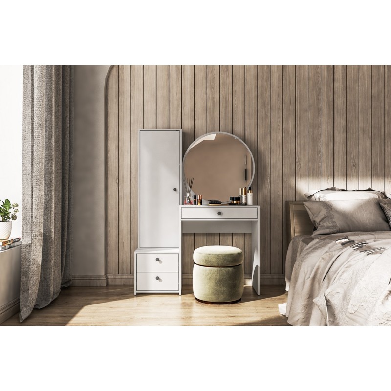 Cómoda con 3 Cajones y 1 Puerta y Espejo Mix & Match - Blanco - Estilo Miami