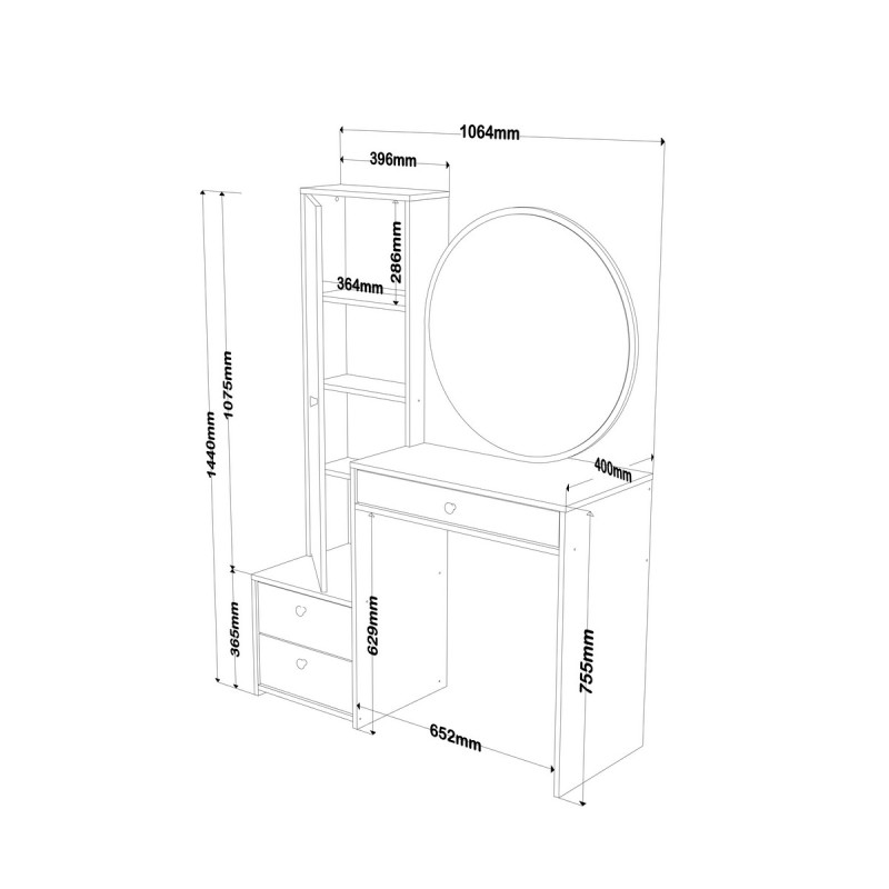 -Medidas del producto montado (Alto x Ancho x Profundidad): 1440 x 1064 x 400 mm