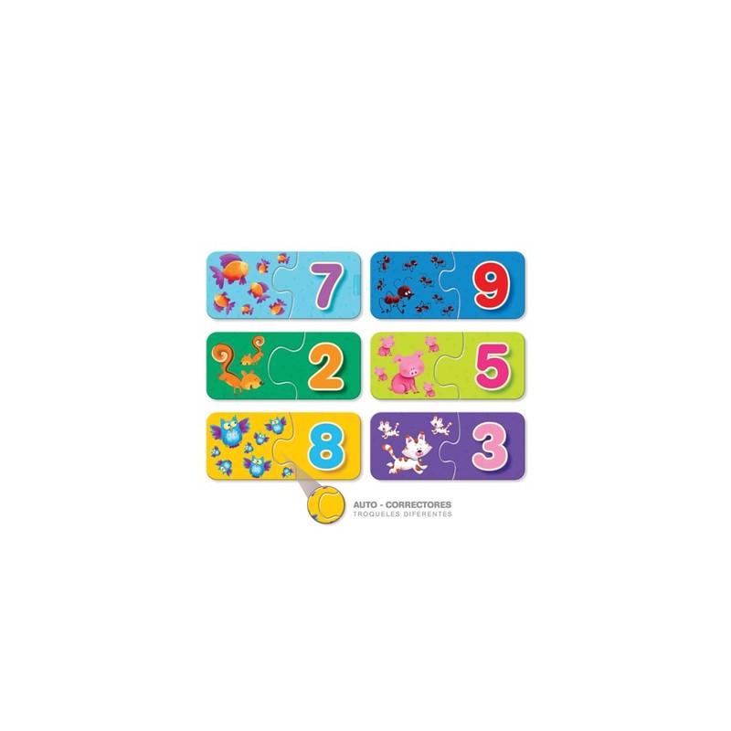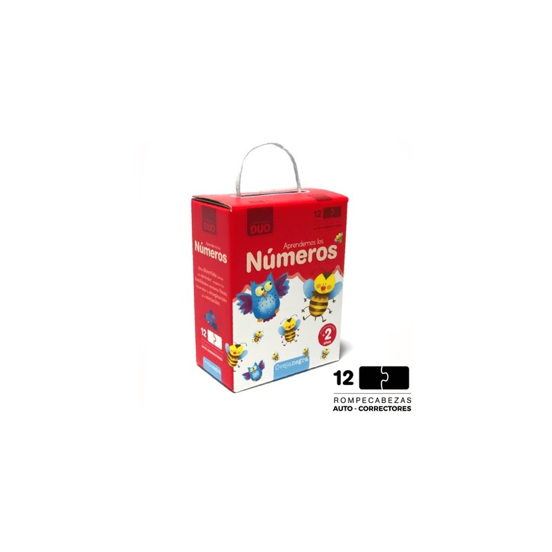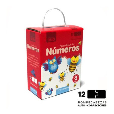 Rompecabezas Duo - Aprendemos Los Numeros - Rompecabezas "DUO”. AUTO-CORRECTORES (cada pieza solo puede ser encastrada con otra de la misma forma). Una divertida forma de aprender...¿Cuántos búhos hay? ¿Cuántas abejas? Incluye 12 rompecabezas (abeja, ardilla, búho, cerdo, gato, hormiga, oruga, jirafa, mono, oso, pez, ratón). Desarrollan: las habilidades motoras finas, la imaginación y la asociación. Ovejanegra juegos cuenta con certificados de normas de seguridad emitidos por el INTI, analizados por el laboratorio de la @camaradeljuguete @produccionytrabajo. Juego distinguido con el SBD "Sello Buen Diseño" otorgado por el Ministerio de Producción de la Nación. Ilustraciones de Gabriel Cortina. Formato envase: 15 cm x 11,5 cm. Contenido: 12 rompecabezas. Formato rompecabezas: 11,5 x 5,1 cm. Edad: desde los 2 años. 1 o más jugadores. Industria Argentina