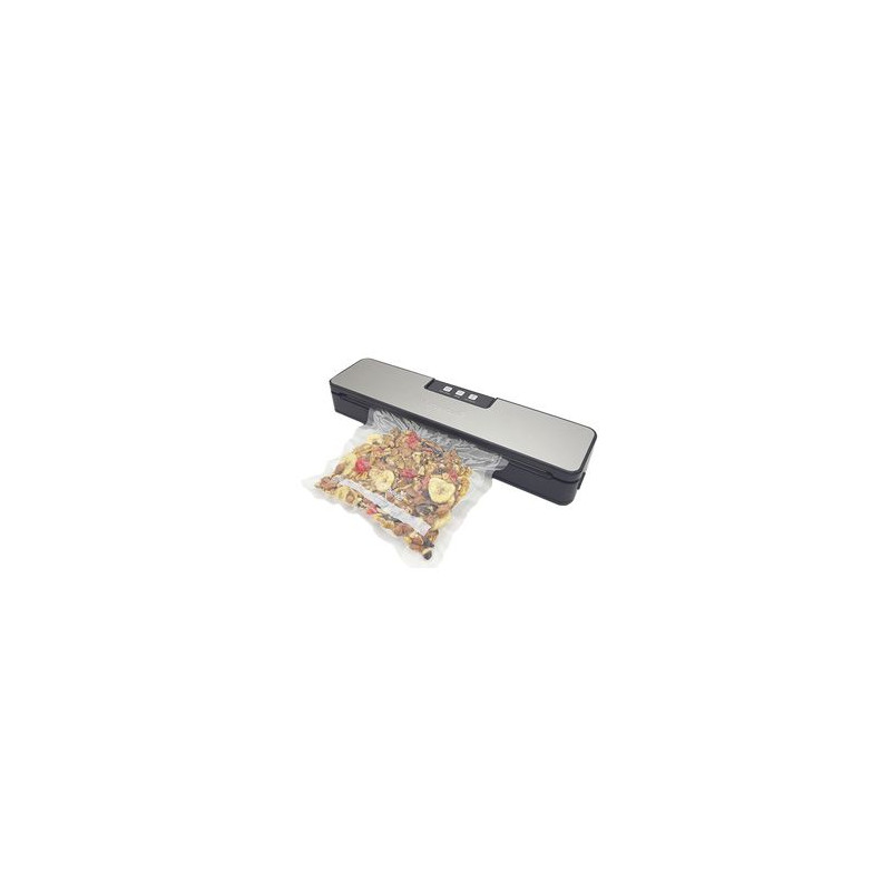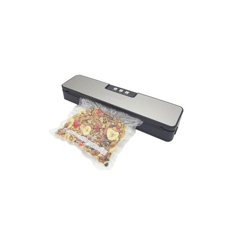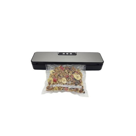 Utiliza únicamente rollos y bolsas gofradas. Función Solo Sellado. Función de Vacio Manual y Automático. Puerto adicional para vacío con contenedores. Sellado Estándar. Diseño compacto de acero inoxidable y liviano. Fácil de usar Bajo Ruido. Peso: 1 kg. Tensión Nominal: 220V 240V. Frecuencia Nominal 50Hz. Grado Máximo de Vacío -0.5 a -0.6 bar. Ancho Máximo de sellado: 30cm. Medidas de Máquina: 38,4*97*57mm. Stock permanente de todos los consumibles y repuestos. INCLUYE 3 BOLSAS DE REGALO.