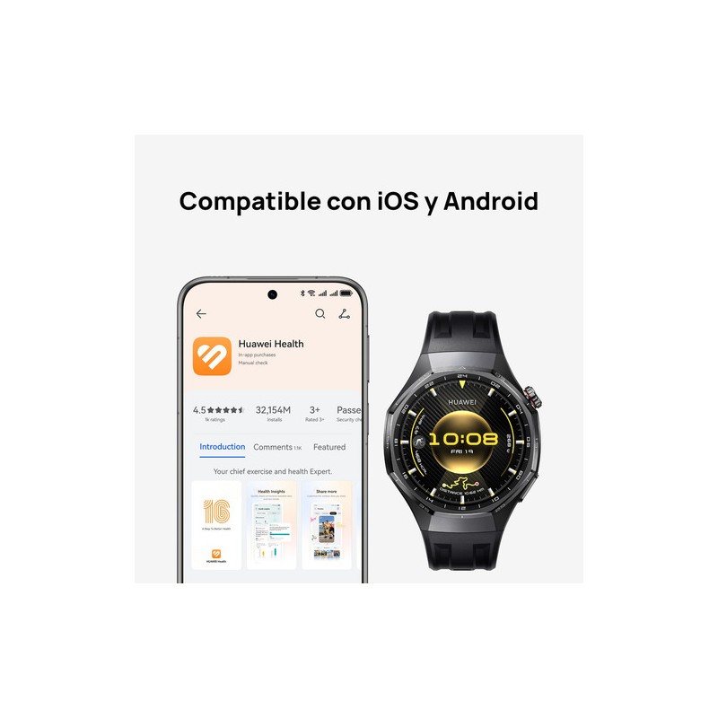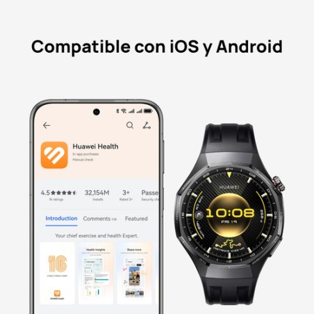El Watch GT 6 Pro también suma funciones inteligentes de estilo de vida como control de música, llamadas Bluetooth, notificaciones, clima, brújula, barómetro, fase lunar y NFC para pagos o transporte. Su compatibilidad con Android e iOS lo convierte en un aliado versátil y confiable. Elegí un reloj premium que combina elegancia, potencia y autonomía para acompañarte todos los días. ¡Dale a tu muñeca la tecnología que se merece con el Huawei Watch GT 6 Pro!