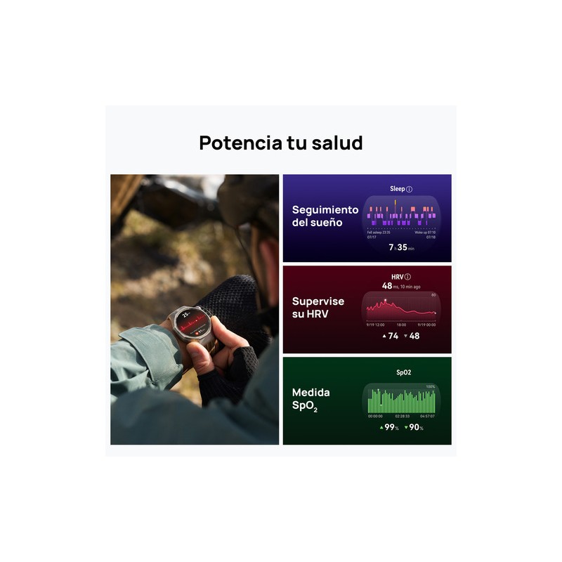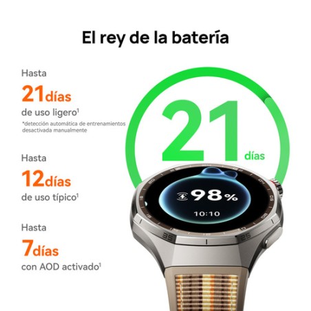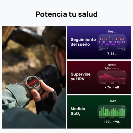 En cuanto a rendimiento, su batería de 867 mAh ofrece hasta 21 días de duración, con carga magnética rápida en apenas 100 minutos. Incorpora GPS integrado, Bluetooth 6.0, NFC y resistencia al agua 5 ATM, IP68 e IP69, lo que lo hace perfecto para acompañarte en tus entrenamientos y actividades al aire libre, sin preocuparte por la autonomía ni por las condiciones del entorno.
