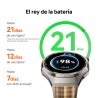 En cuanto a rendimiento, su batería de 867 mAh ofrece hasta 21 días de duración, con carga magnética rápida en apenas 100 minutos. I