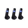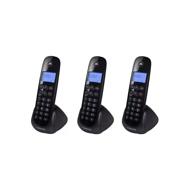 Teléfono Inalámbrico Motorola M700-3 El teléfono inalámbrico Motorola M700-3 es la solución ideal para quienes buscan comodidad y funcionalidad en sus comunicaciones diarias. Su diseño moderno y elegante permite moverse con libertad gracias a la tecnología inalámbrica, brindando una experiencia práctica y sin cables. Cuenta con una pantalla LCD clara que facilita la navegación por sus funciones principales. La batería de 300 mAh proporciona hasta 10 horas de conversación y 100 horas en modo de espera, garantizando un rendimiento confiable para el uso diario. Incluye tres auricul