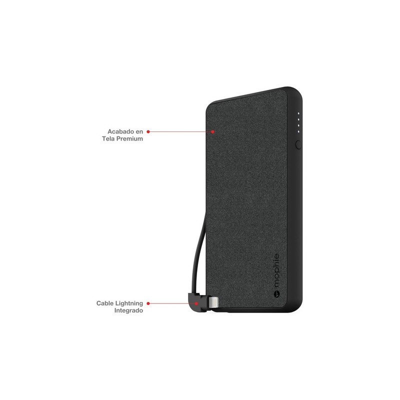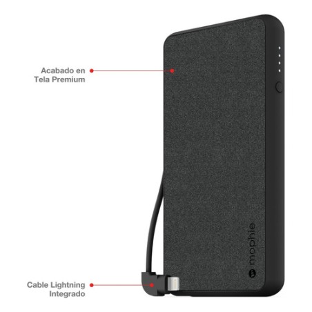 *Mientras no lo utilices, el cable Lightning integrado se guarda cómodamente a un lado de la batería de carga, y estará siempre disponible cuando la precises y discretamente guardado mientras no la utilices.