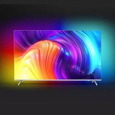 Televisor Android LED 4K UHD (3840 x 2160), con tecnologia Ambilight en 3 lados. Sistema operativo Android TV 11. Procesador Quad Core. Tamano de memoira (flash) 16Gb. Control por voz con el Asistente de Google, compatible con Alexa. HDR para imagenes mas vibrantes y brillantes. Motor de imagen P5 para mas profundidad, colores mas intensos y naturales, contraste nitido y movimiento muy fluido. Diseno atractivo, elegante y ultra fino.