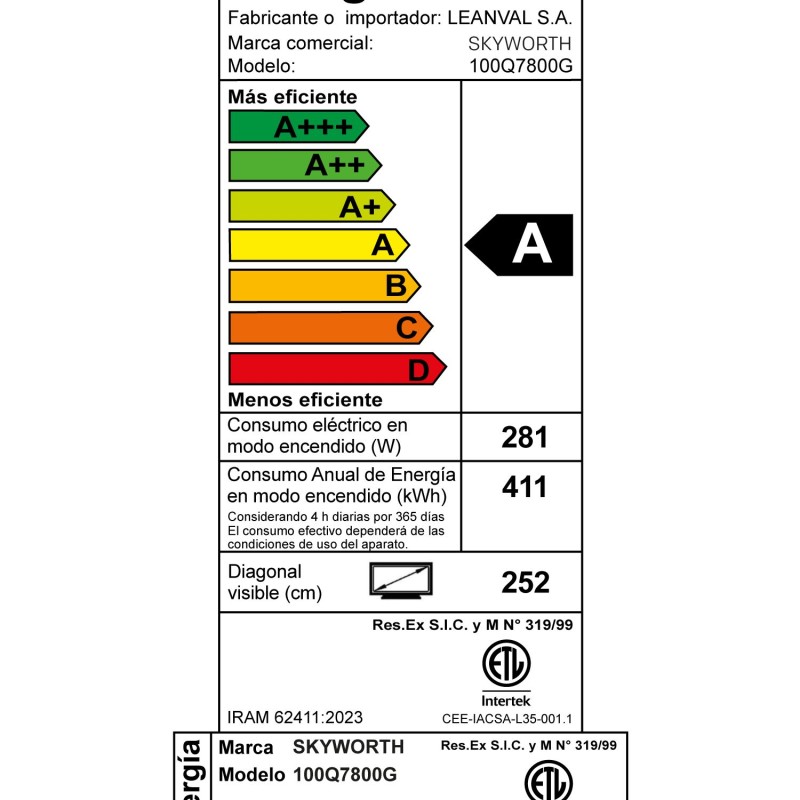 Smart TV de 100" con tecnología QLED. Excelente definición, brillo y contraste. Compatible con optimizaciones de imagen que incluye HDR10+, Dolby Vision, Local Dimming, MEMC, ALLM y VRR. Con tasa de refresco de hasta 144 Hz. Sonido impecable gracias a la compatibilidad con Dolby Atmos y 5 parlantes internos más subwoofer. El sistema operativo Google TV permite acceder una vasta biblioteca de aplicaciones, chromecast incorporado y control por voz.