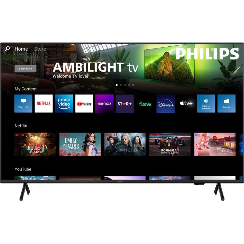 SMART TV CON GOOGLE PHILIPS 4K AMBILIGHT 70" 70PUD7908/77 -Pantalla LED 70" 4K (3840x2160) 16:9 -ISDB-T, PAL, SECAM -Google TV -Procesador Quad Core -Memoria 8GB -WiFi 802.11n 2x2 -Bluetooth 5.0 -4 HDMI -2 USB -Salida de audio digital (¦nptica) -Ethernet-LAN RJ-45 -Saluda de auriculares -Entrada I/D de audio -Antena tipo F -Potencia de sonido 20W RMS -Aplicaciones preinstaladas: Amazon Prime Video, Disney+, YouTube, Netflix -Funciones Ambilight: Modo Juego, Modo Lounge, Se adapta al color de la pared, Ambilight integrado -Versi¦nn Ambilight: 3 lados -Asistente de voz -Formatos de reproducci