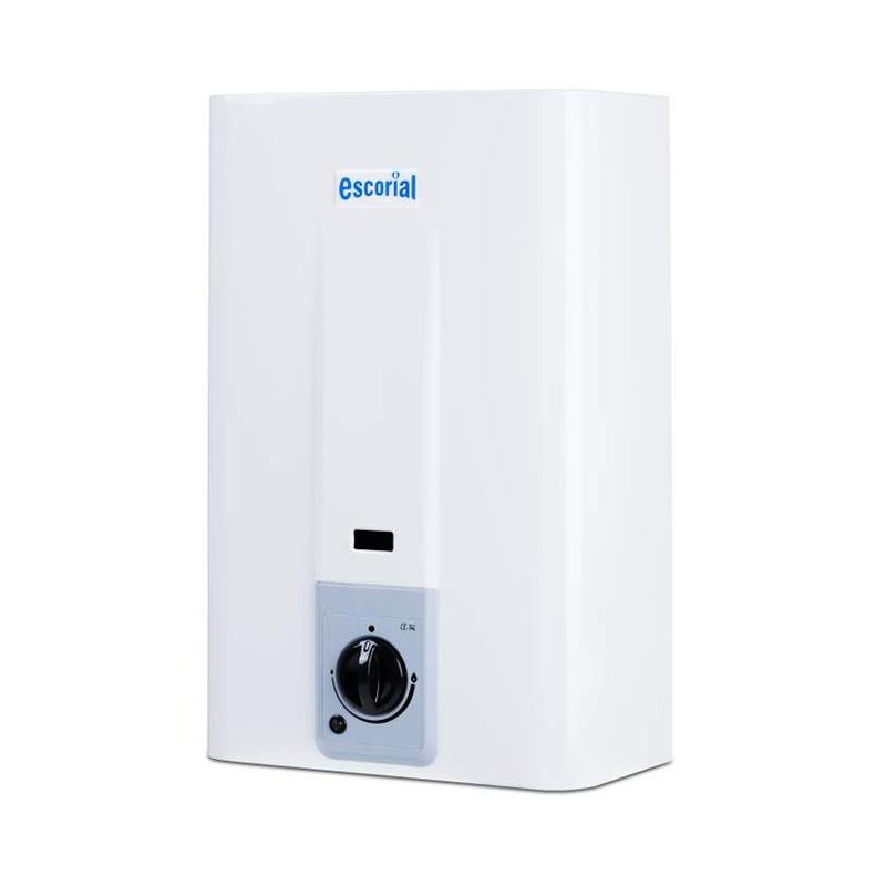 Nuevo calefón Escorial de 14 lts, sin llama piloto (encendido automático),clase A de eficiencia energética, ahorra un 35% de gas, en comparación a los calefones con piloto. Tiro natural, doble sensor de seguridad (gases de combustible y sobrecalentamiento de agua) y válvula de regulación progresiva de llama.